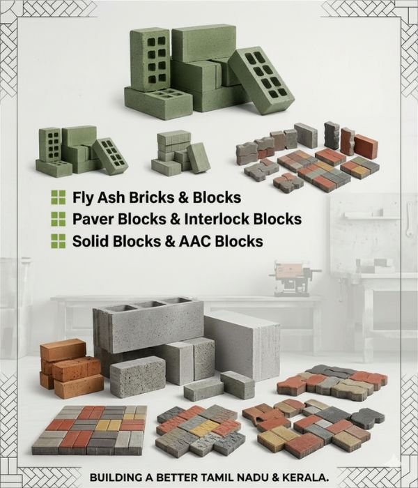 Acme Bricks is a leading manufacturer of fly ash bricks, blocks, and paver blocks in Coimbatore. With over 20+ years of experience, we deliver high-quality construction materials for all project types. Our products are widely used in residential, commercial, and industrial construction across Tamil Nadu and Kerala.